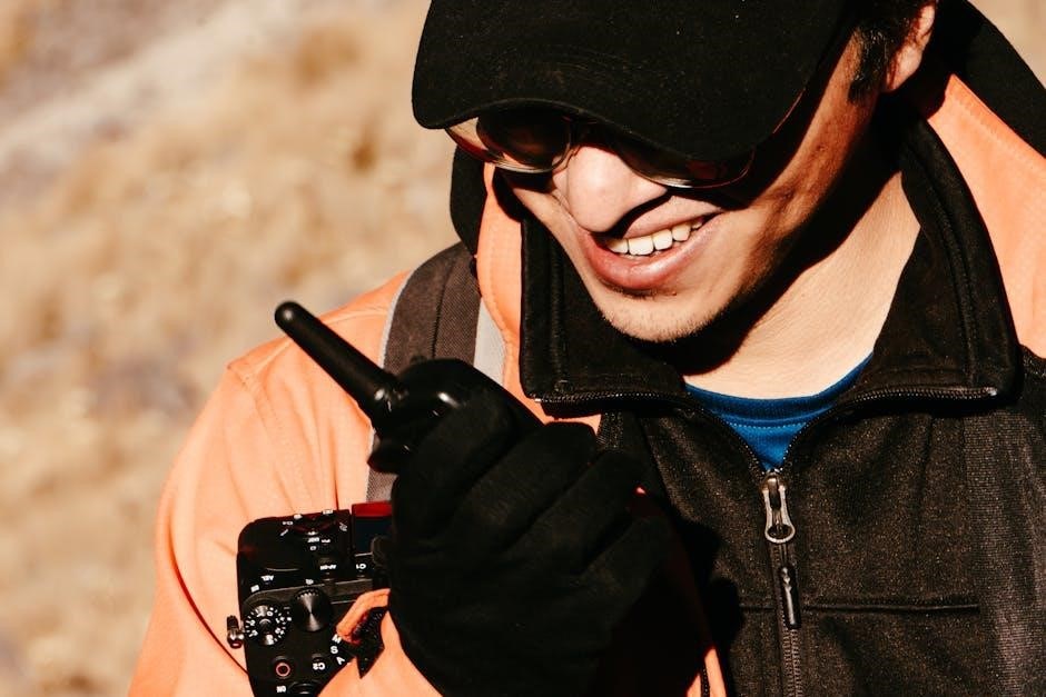Troubleshooting PTT Issues: If the PTT button isn’t functioning, consult the troubleshooting section of the PDF manual. Common issues include button malfunction or incorrect channel settings. Ensure the button is fully depressed during transmission.